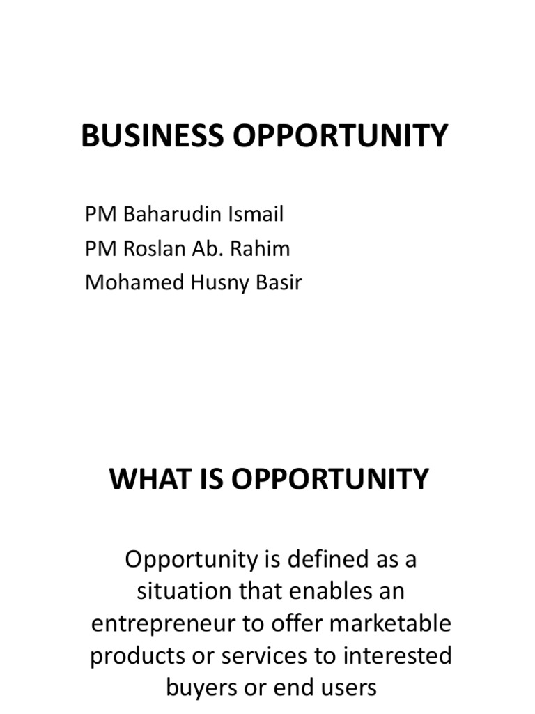 View ent 300 business opportunities project reportpdf from ent 300 at universiti teknologi mara. Business opportunity is the initiator of business venture and it consists of a series of circumstances in the market that. Business opportunity is the initiator of business venture and it consists of a series of circumstances in the market that enable turning a business idea into a business venture.